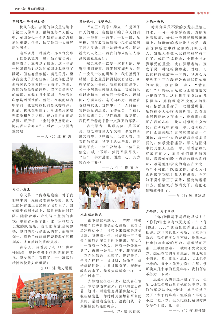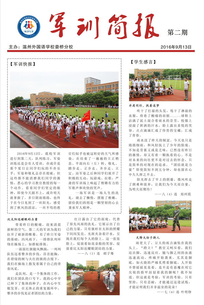 温州外国语学校娄桥分校2015、2016级学生军训简报(二)