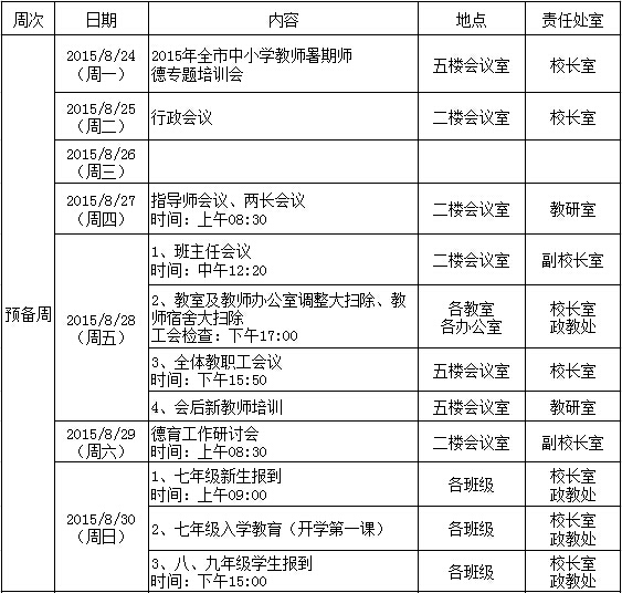 2015学年第一学期开学工作行事历