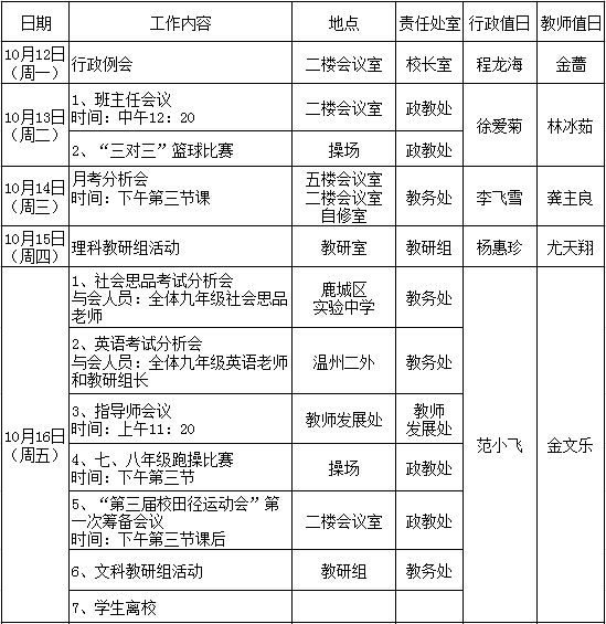 第七周工作行事历