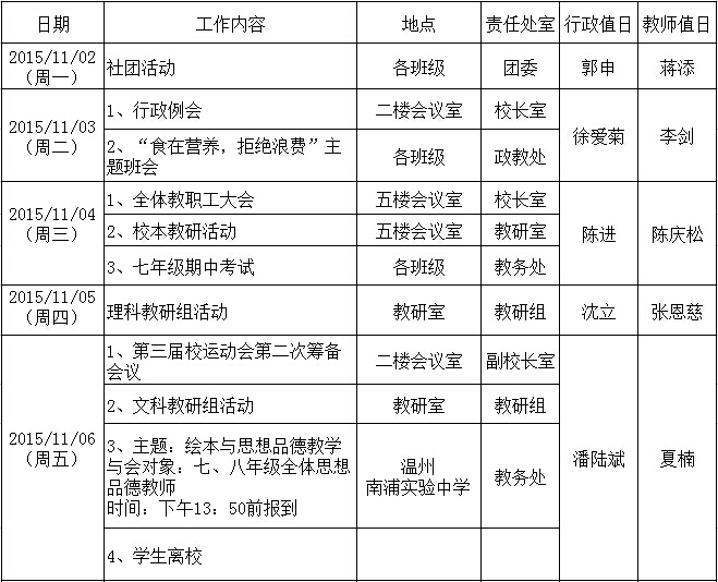 第十周工作行事历
