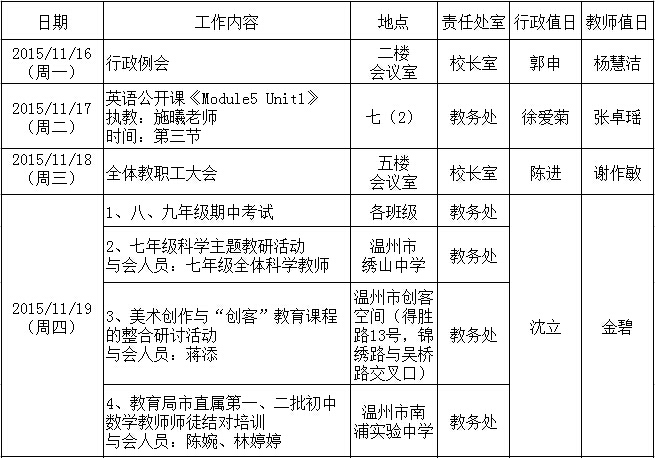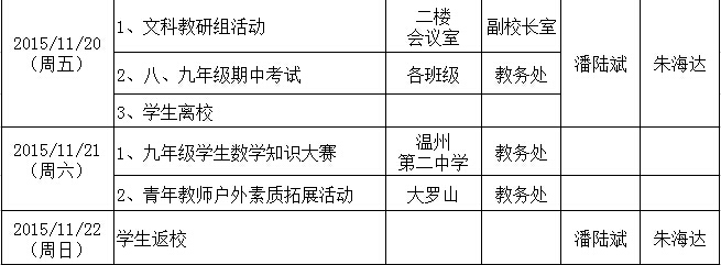 第十二周工作行事历
