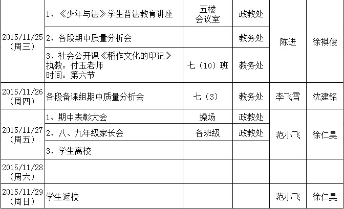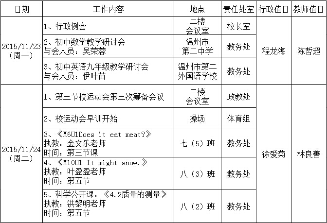 第十三周工作行事历