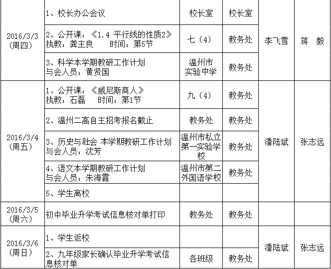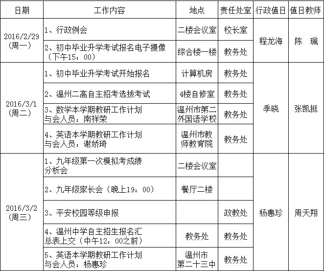 第三周工作行事历