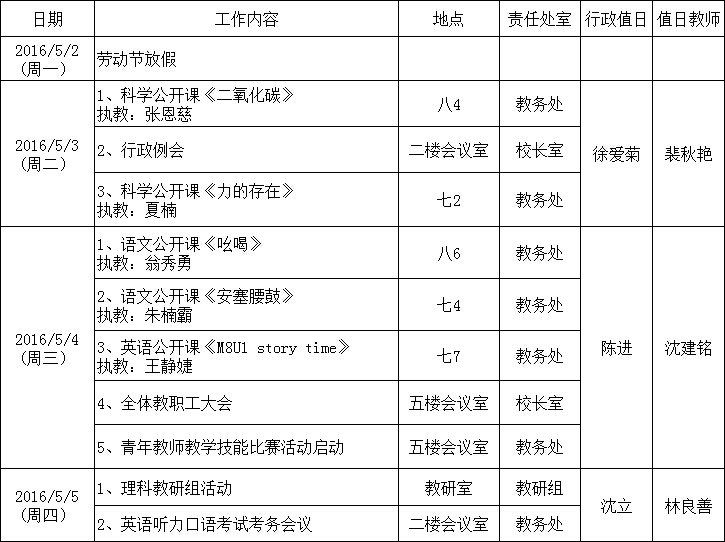 第十二周工作行事历
