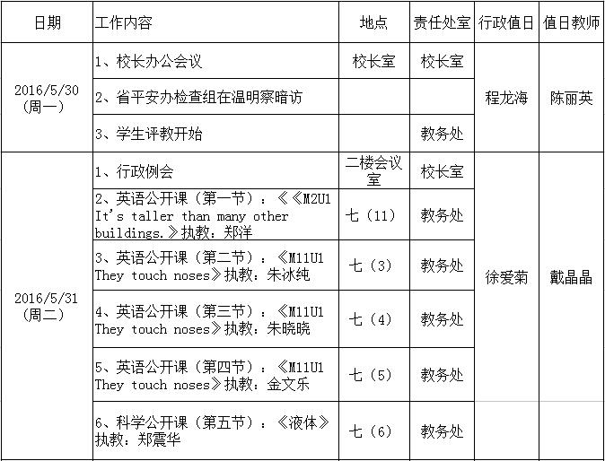 第十六周工作行事历