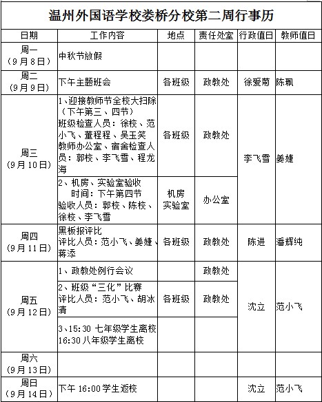 第二周工作行事历