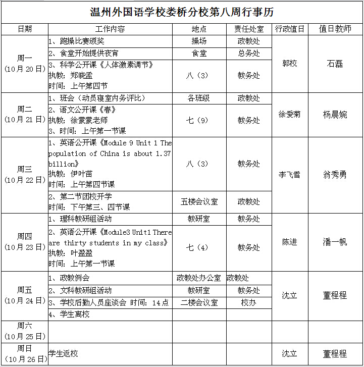 第八周工作行事历