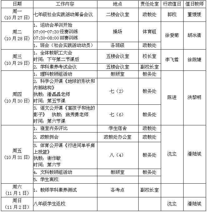 第九周工作行事历