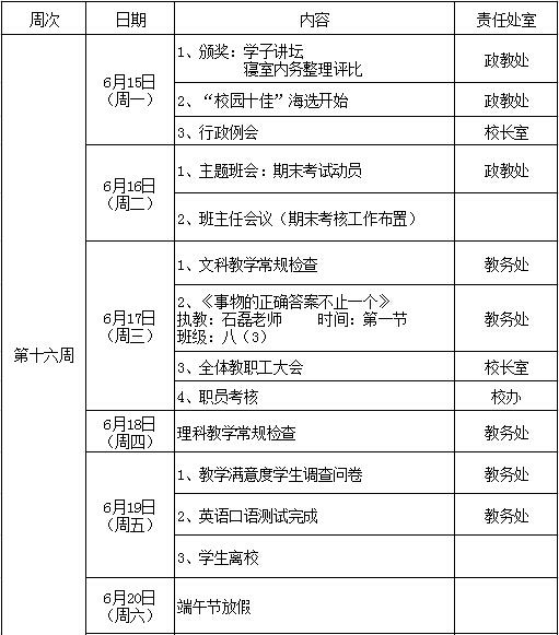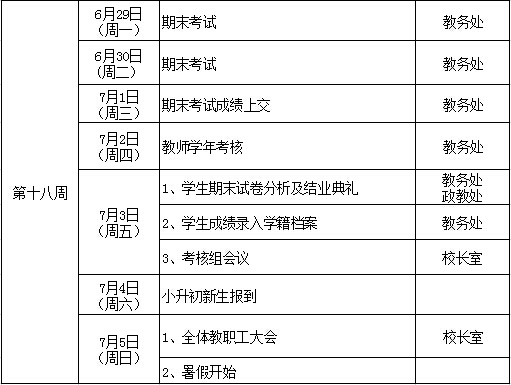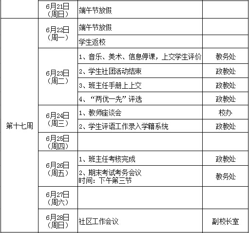 2014学年第二学期期末工作行事历