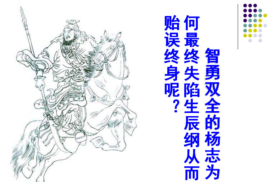“智勇双全的杨志怎么失败了?”石老师微微皱起眉头,提出一个问题,一下激起了同学们热烈的疑问。学生学习课文之前心目中杨志的英武形象一下子蒙上了一层阴翳,求知的渴望被一下子激发出来。这种直接由学生预习内容导入课程的方式使课堂的衔接变得更加顺畅,使课堂可以更加接近小说中人物的分析之中。