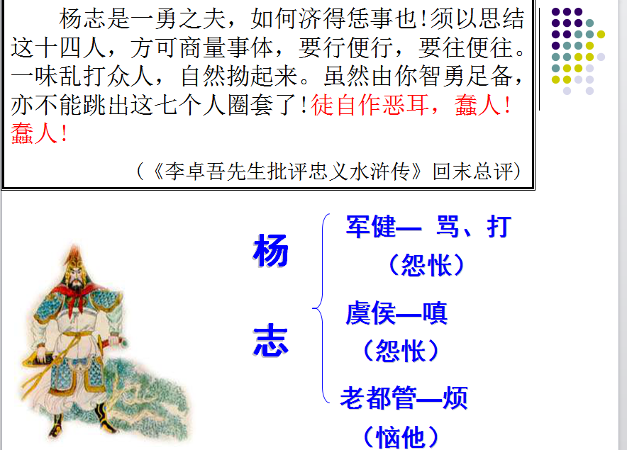 “因为吴用这一方十分团结,杨志对待自己人却很苛刻,”叶闻笛回答道,“文章第六自然段讲到了这一点。”