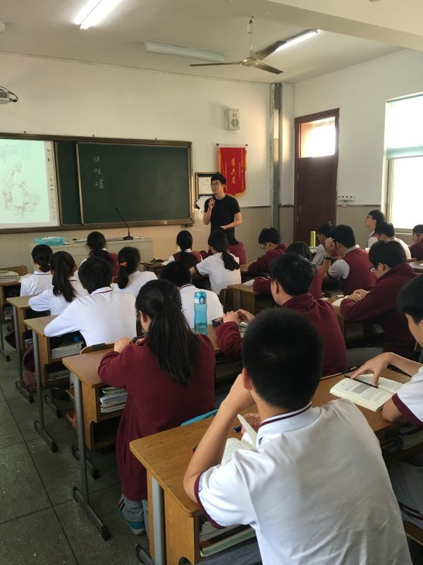 课堂以本文作者萧乾的传奇经历导入,讲述作者不仅能用笔头记录下战场上的腥风血雨,更能以其细腻的情感记录生活中的点滴。翁秀勇老师紧扣吆喝的“艺术性”和“声乐性”的两个特点,让学生在具体的吆喝语句中体会其艺术性并通过听录音学会纯正的老北京吆喝。整个课堂气氛热闹,吆喝声此起彼伏。之后,翁秀勇老师又巧妙地通过艺术性引导学生对作者情感的思考,得出作者对吆喝是喜爱的、对童年的怀念、对吆喝渐渐消失的痛惜等情感。