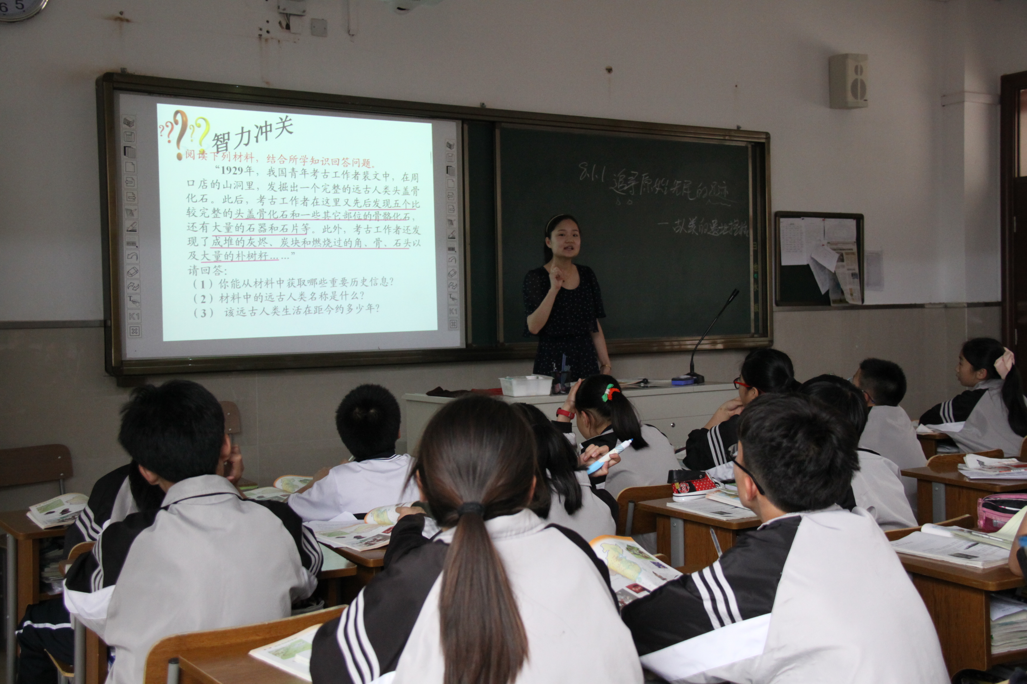 )班围绕课题《追寻原始先民的足迹》进行课堂展示。温州外国语学校指导师戴志富老师、我校徐爱菊老师以及社会组全体老师积极参与了本次听课、评课及相关研讨活动。