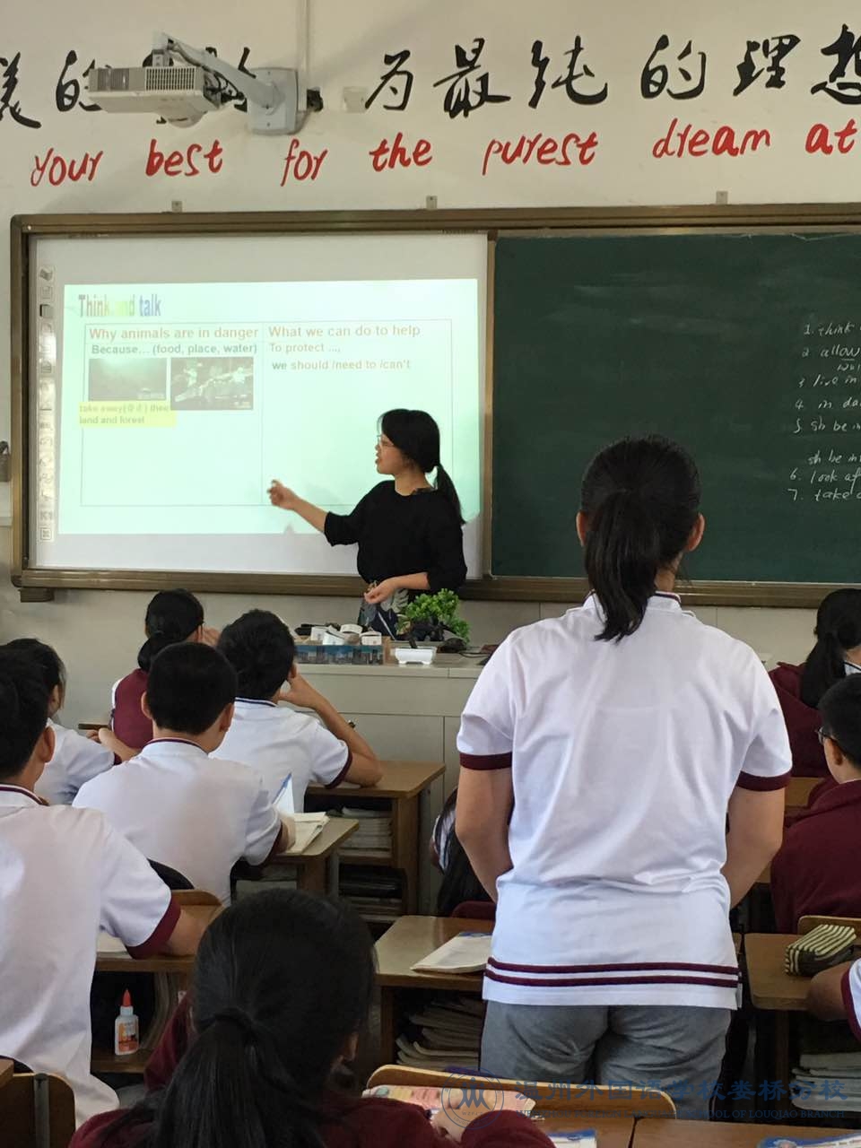 上很多动物面临灭绝的基础上,通过活动,讨论应该采取怎样的措施来保护动物,从而培养学生的主人翁意识和忧患意识。教学中,夏老师根据学生实际情况,灵活调整教学内容,适当进行拓展,以丰富学生知识,拓展学生视野,进行理想、责任的教育。