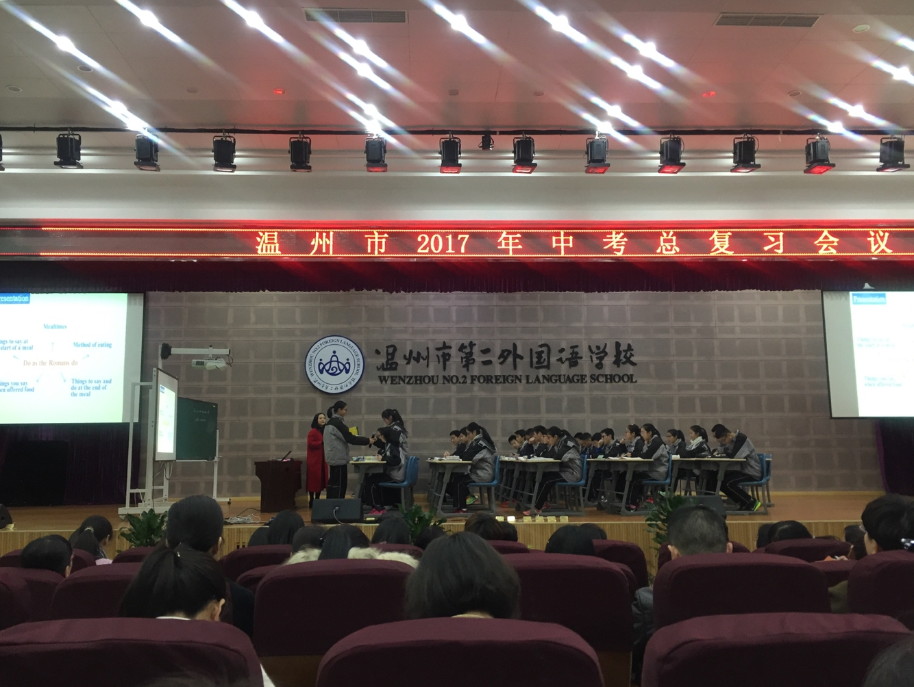年3月10日,2017温州市初中英语毕业升学考试说明与复习建议在温州第二外国语学校举行。温州市各县(市、区)英语教研员和九年级英语教师到场参加。会议由温州市英语教研员曹东老师主持。