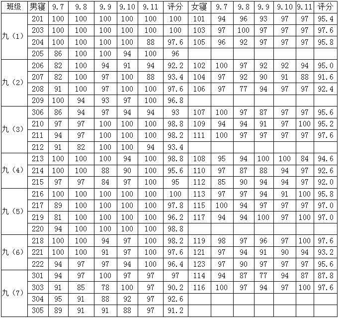 2015学年第一学期九年级第二周寝室得分公布