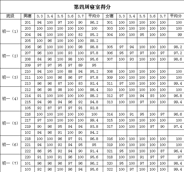 2013学年第二学期第四周寝室得分公布