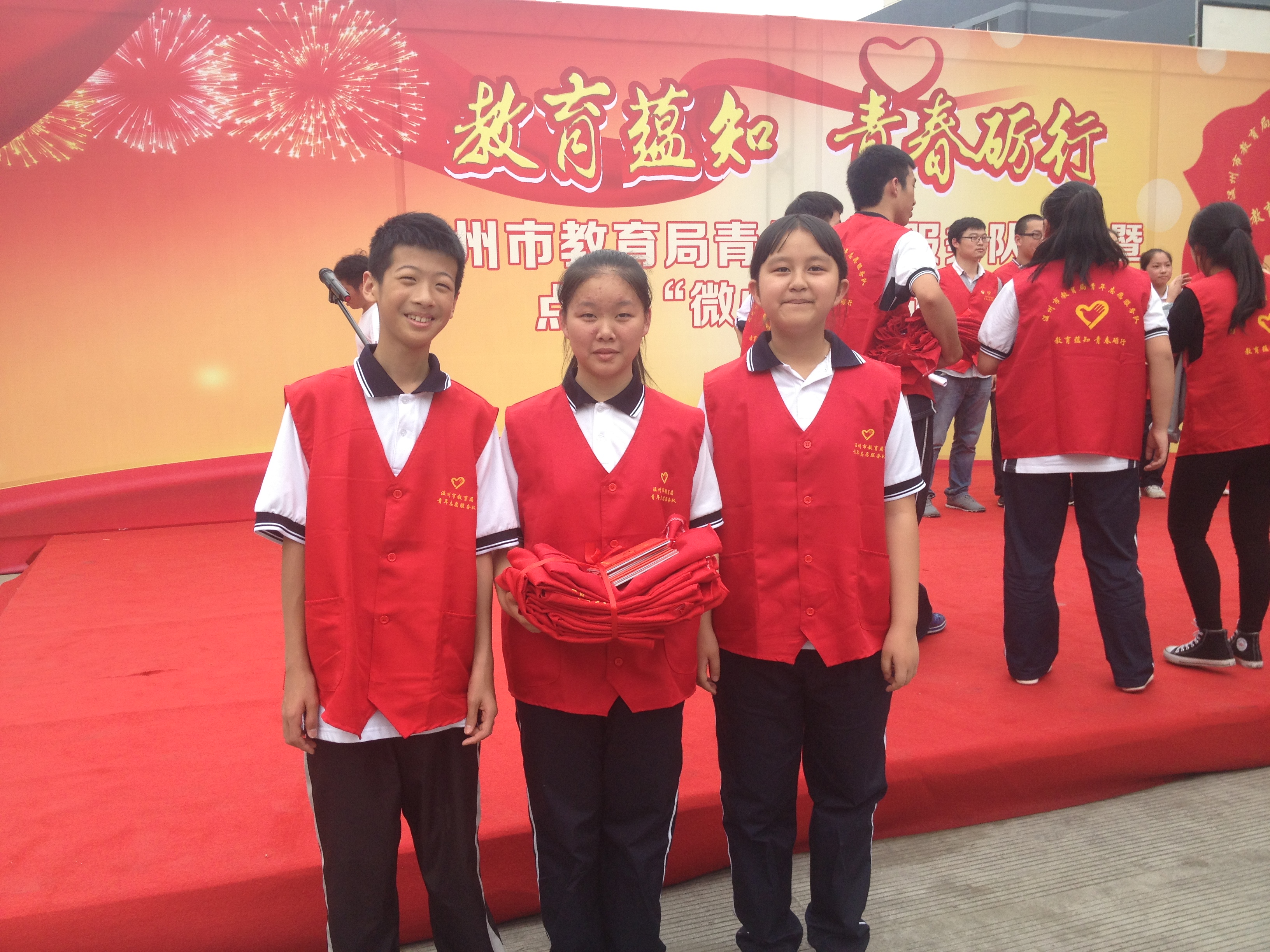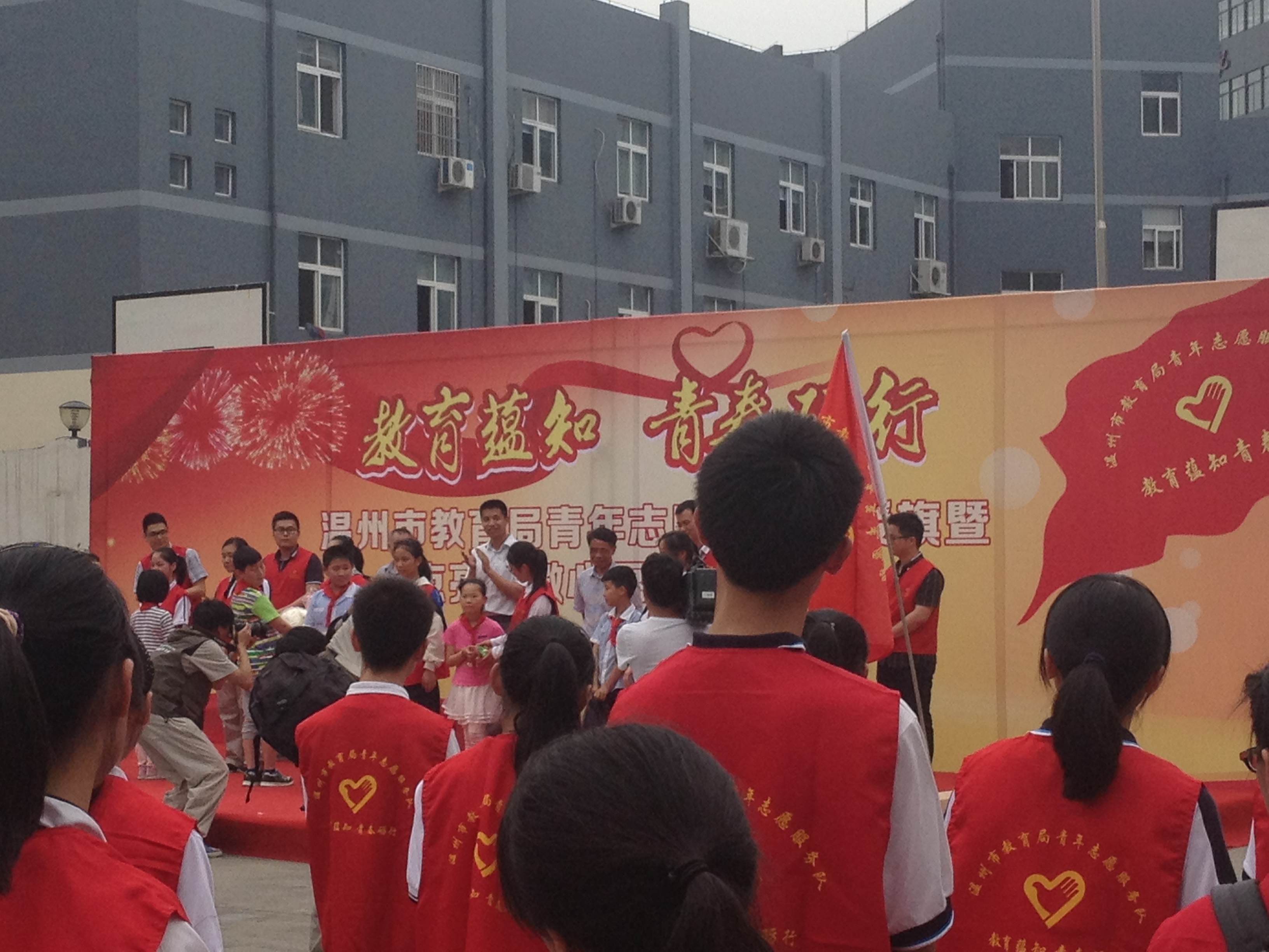 名志愿者代表参加了市教育局团委于温州市益民学校举行的温州市教育局青年志愿服务队授旗仪式暨点亮“微心愿”启动仪式。