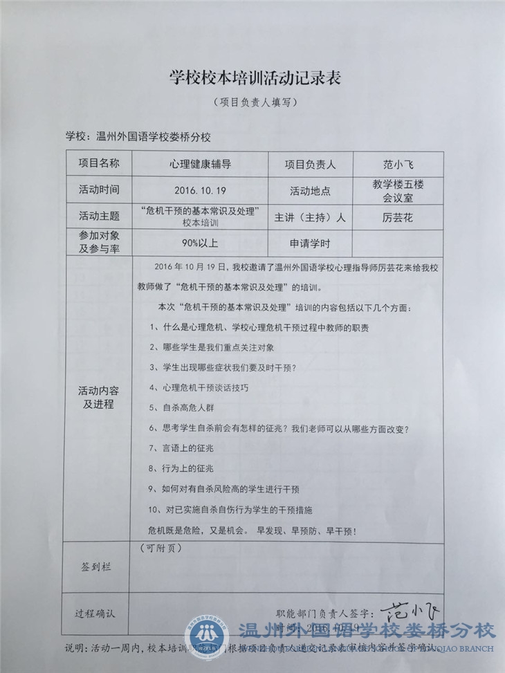 2016第一学期校本培训之心理健康辅导