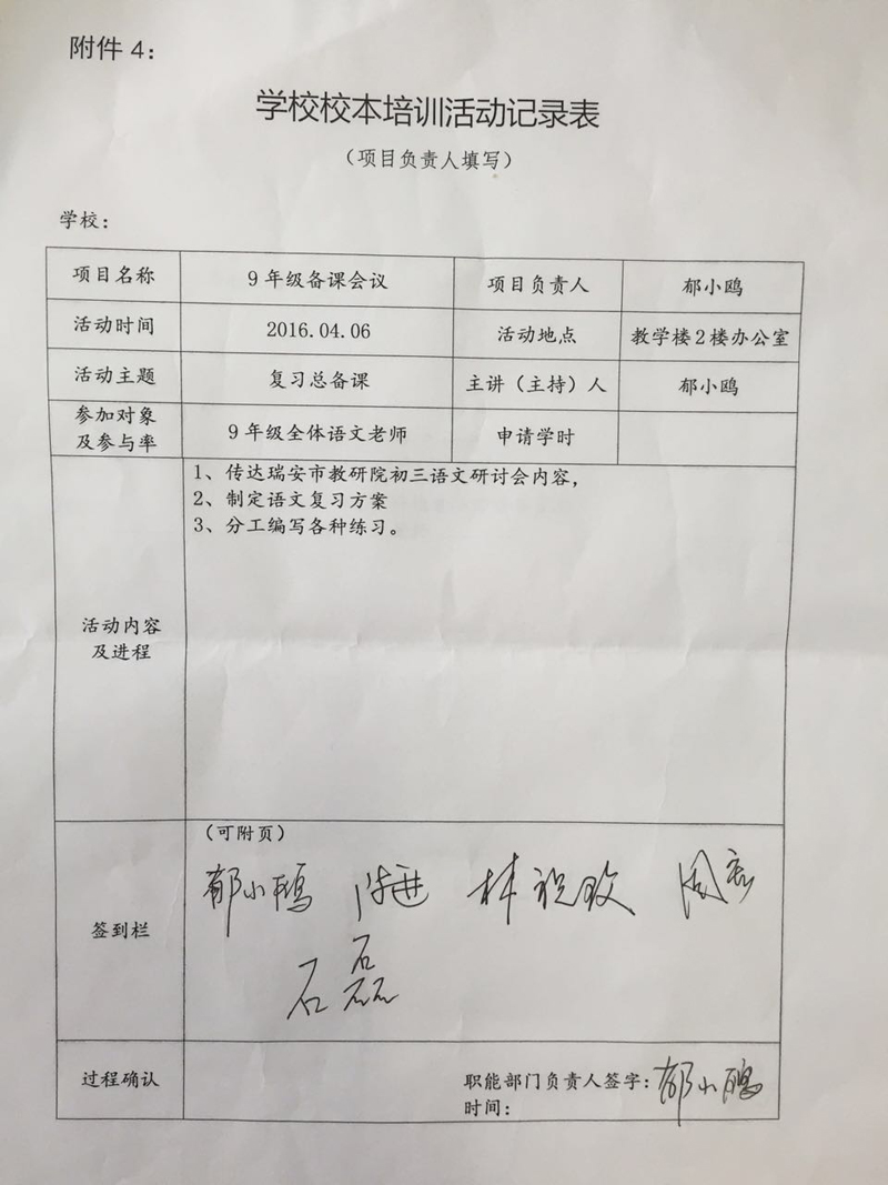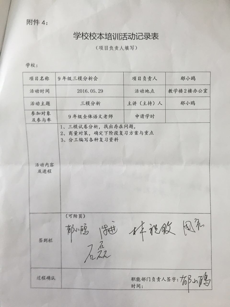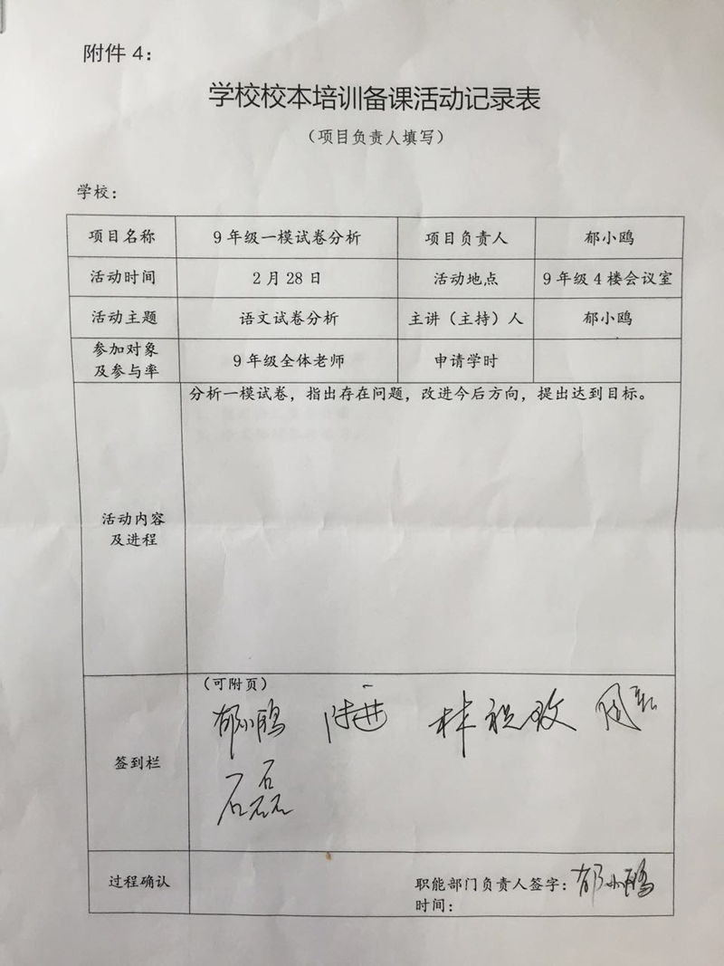 2015学年第二学期九年级语文组培训活动