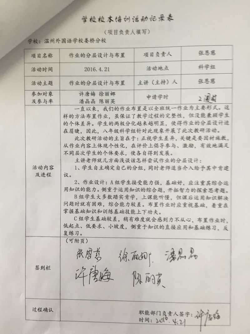 2015学年第二学期八年级科学组培训活动